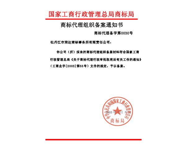 商標(biāo)局備案證明 資質(zhì)證書